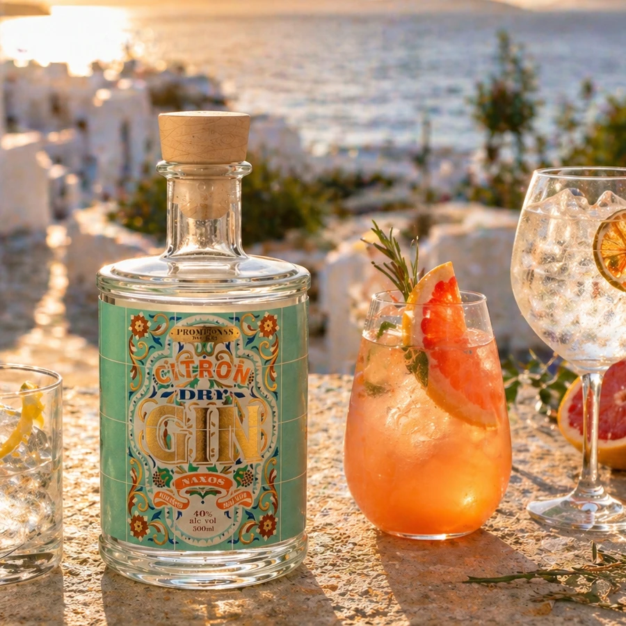 Naxos Citron, in its gin era. 100% ελληνικό gin, με άρκευθο, απόσταγμα κίτρου Νάξου και αρώματα από βότανα και εσπεριδοειδή 40% alcohol